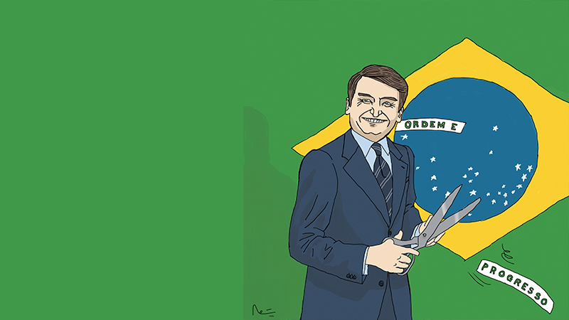 | Le candidat d’extrême-droite enlève de la devise du Brésil le mot progrès pour ne garder que ordre ( ©-Romée-de-Saint-Céran-pour-LIncorrect) |